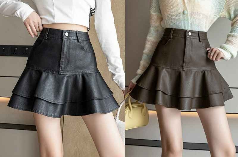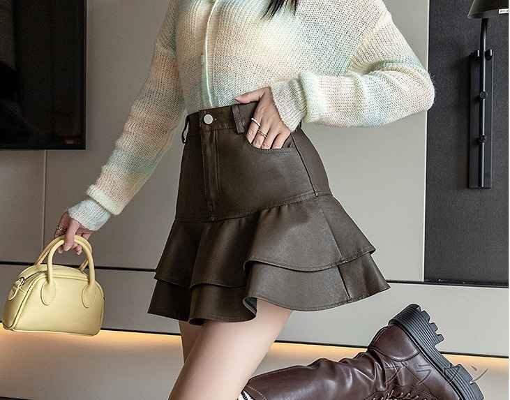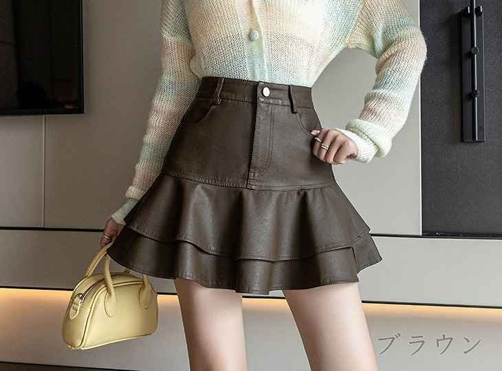 ミニスカート ハイウエスト フリル カジュアル かわいい 秋冬 ボトムス【大きいサイズあり】 L ブラウン