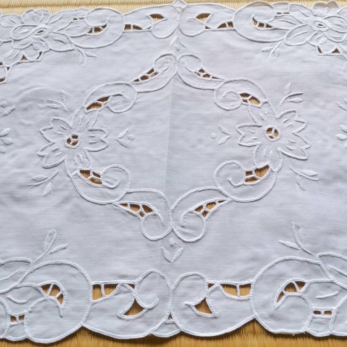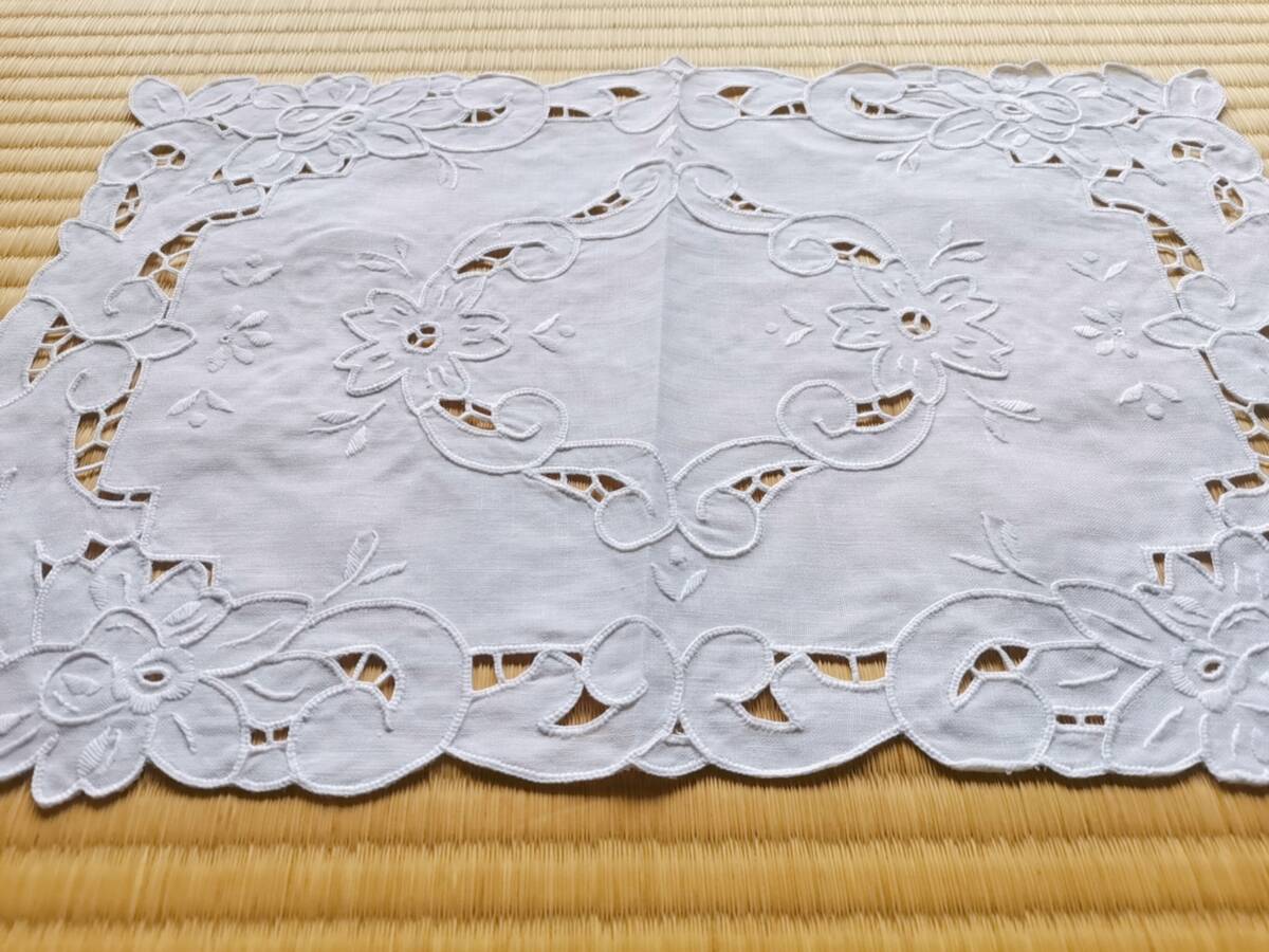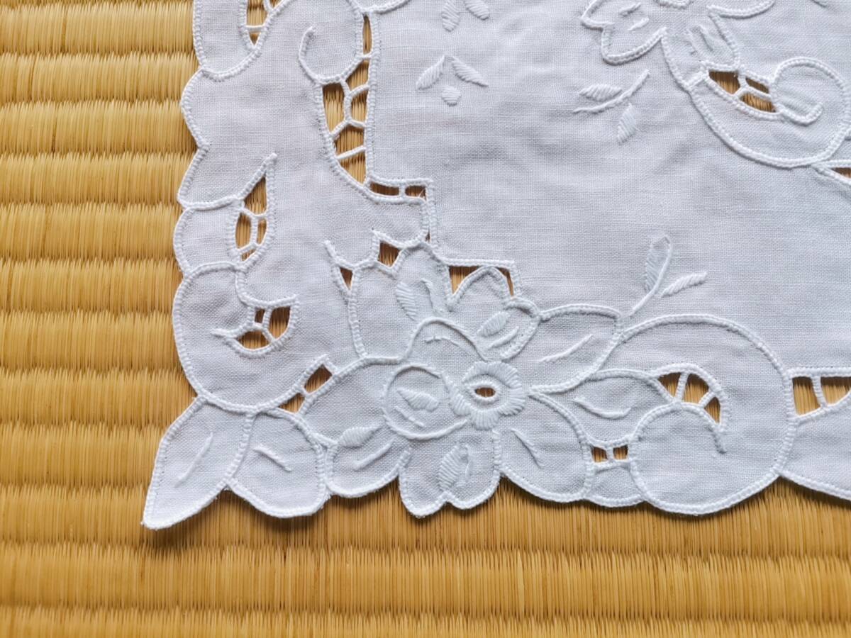 アンティークレース 上品 リネン 手刺繍 マルチカバー ティーマット ドイリー