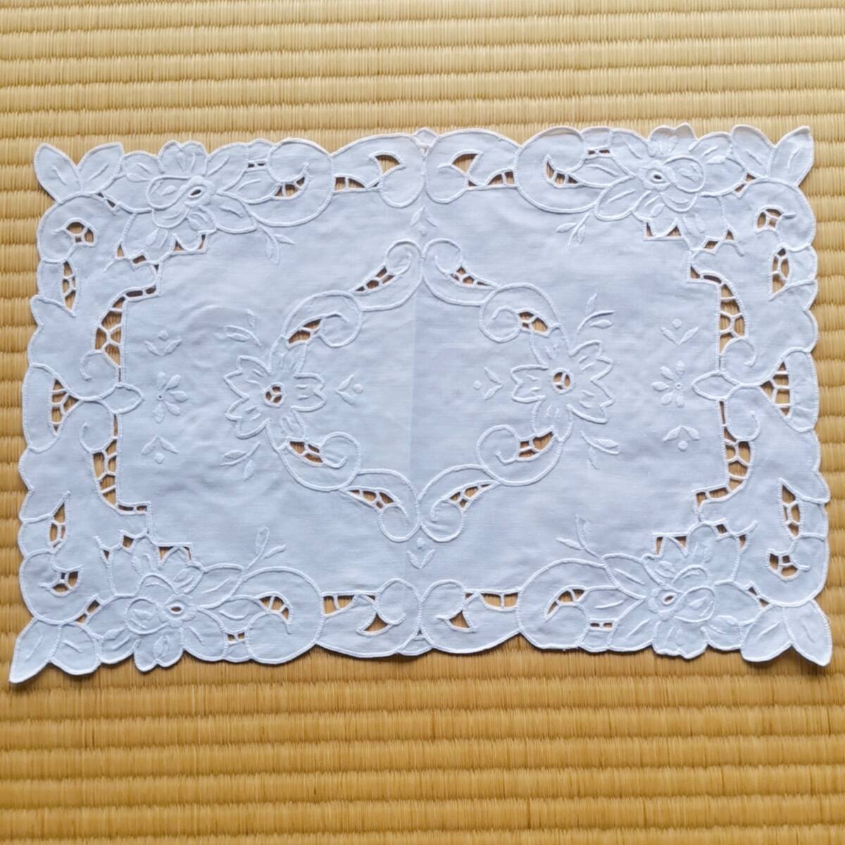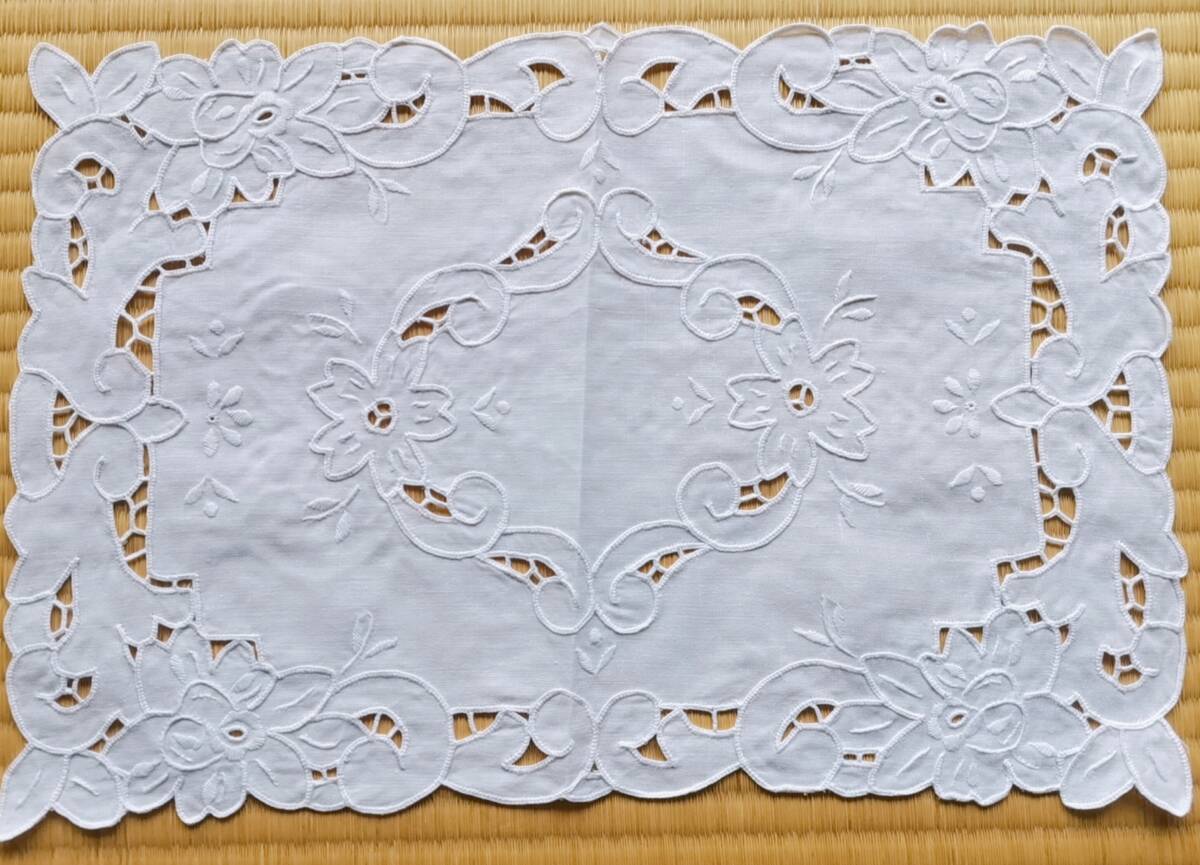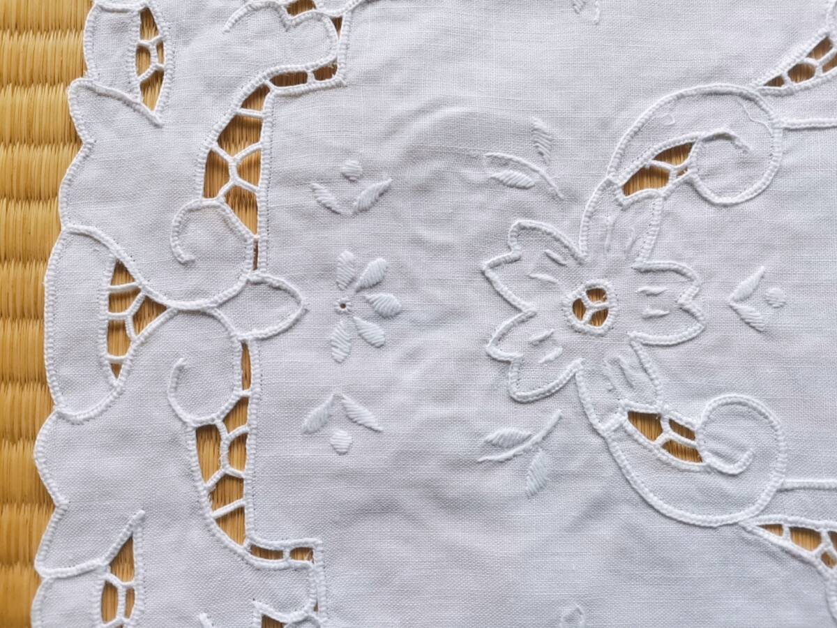 アンティークレース 上品 リネン 手刺繍 マルチカバー ティーマット ドイリー