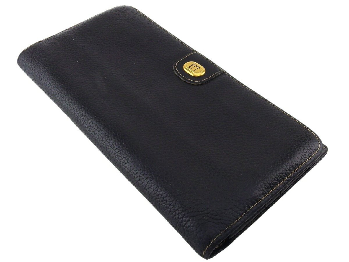 ダンヒル Dunhill 长财布 ロゴプレート ブラック ゴールド レディース 中古