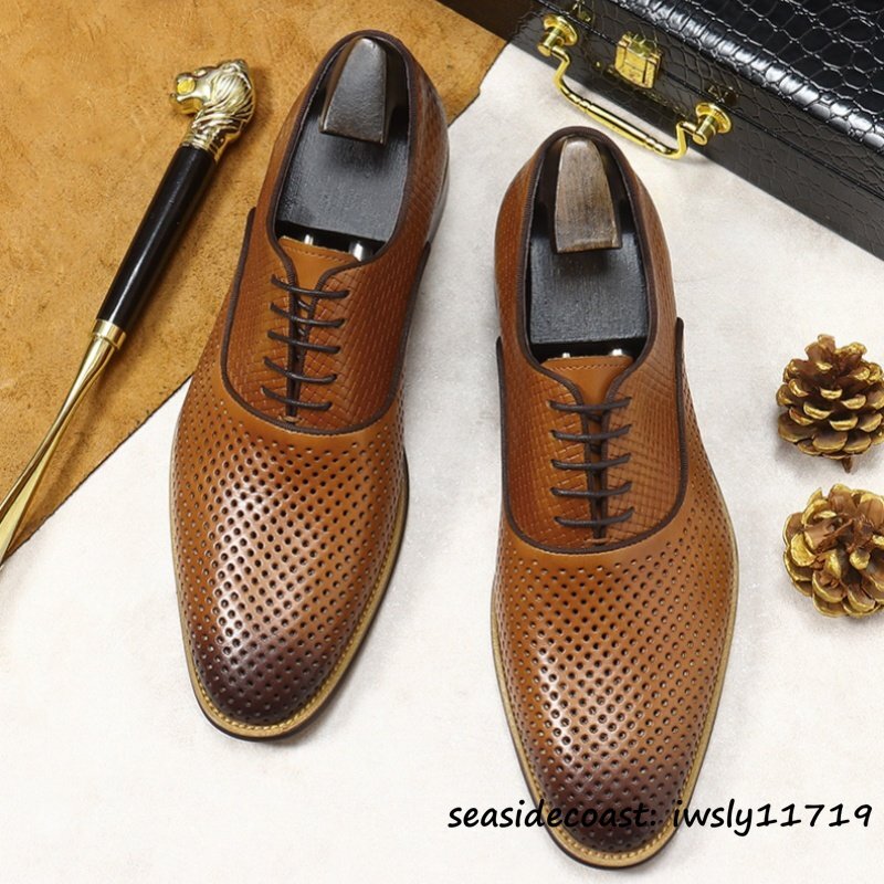 超希少■ビジネスシューズ 革靴 高级牛革 职人手作り 本革 レザーシューズ メンズ 冠婚葬祭 新品 绅士靴 メッシュ 通気性 ブラウン 27.5cm
