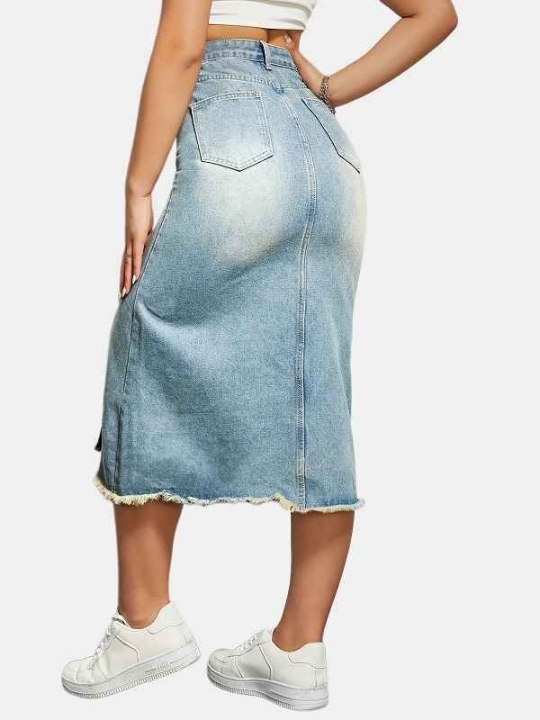 デニムスカート スリット ひざ丈スカート デニム ボトムス シンプル M ライトブルー