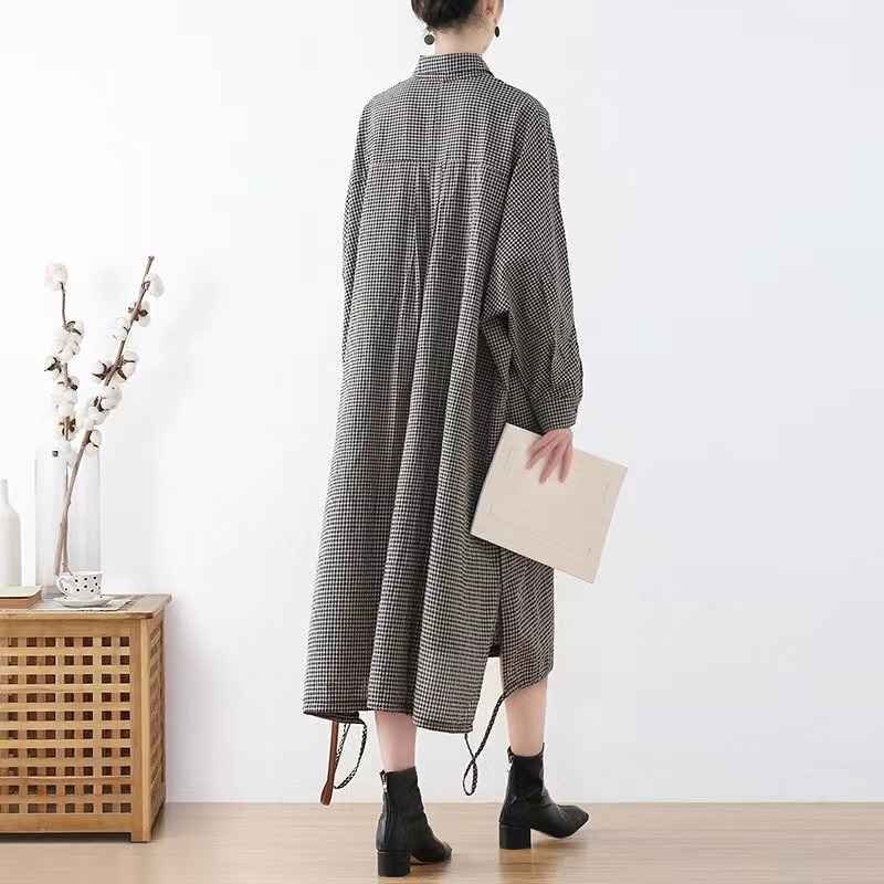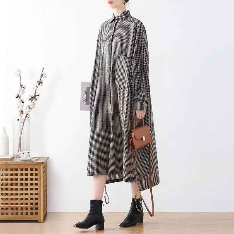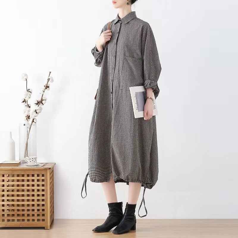 长袖ワンピース ひざ丈ワンピ ゆったり シンプル 格子柄 秋冬【大きいサイズあり】 L チェック柄