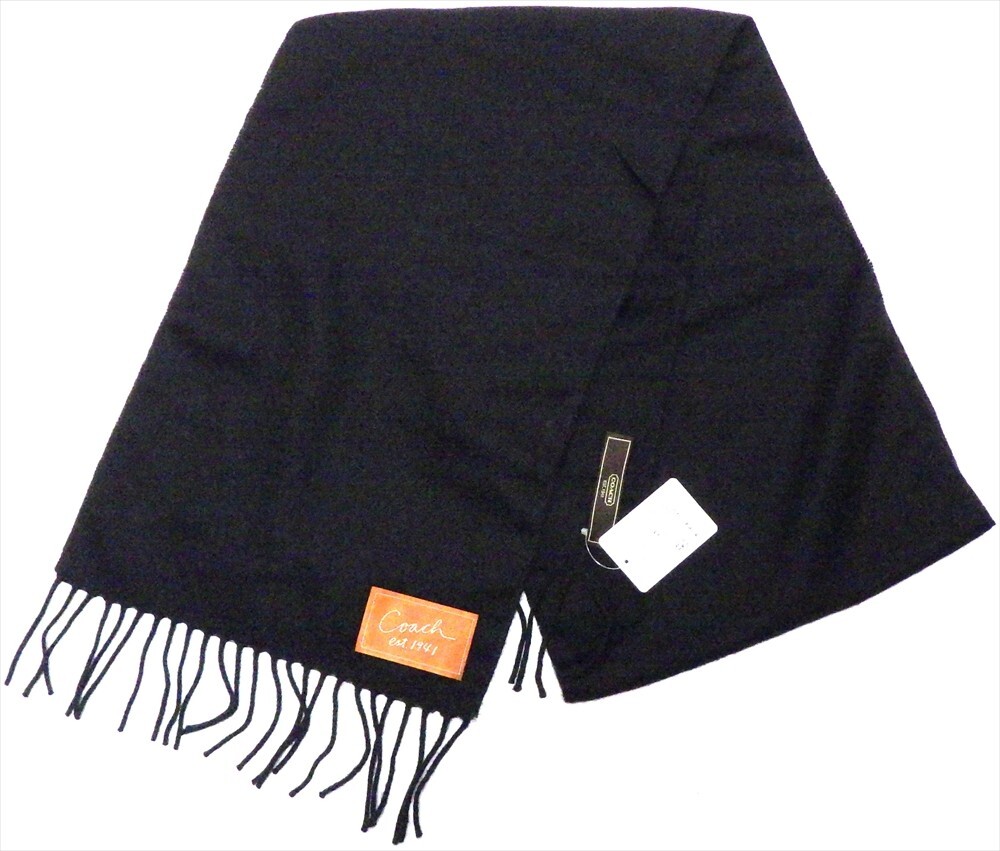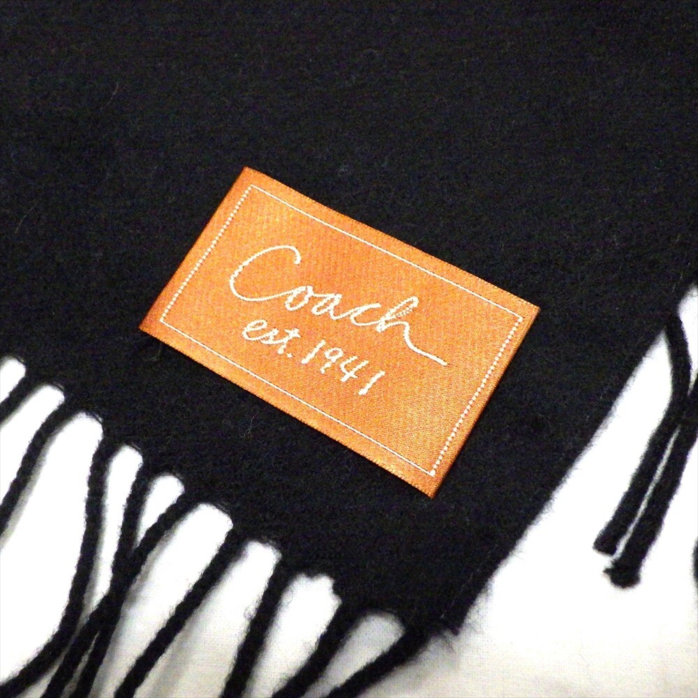 38485c【1円スタート】COACH コーチ ウール×カシミヤ マフラー ブラック タグ付き 未使用品