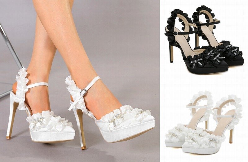 【高品质】全2色 ハイヒールシューズ オフィス ピンヒール フリル sweet系 38 ブラック