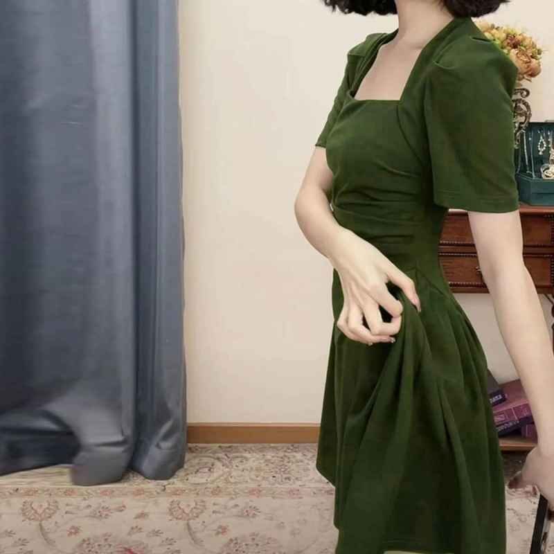 ミニワンピース レディース 夏服半袖 ギャザーワンピ きれいめカジュアル XL カーキ
