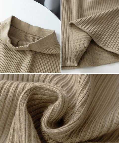 リブニットスカート タイト ミニスカート 台形ニットスカート フリー ベージュ