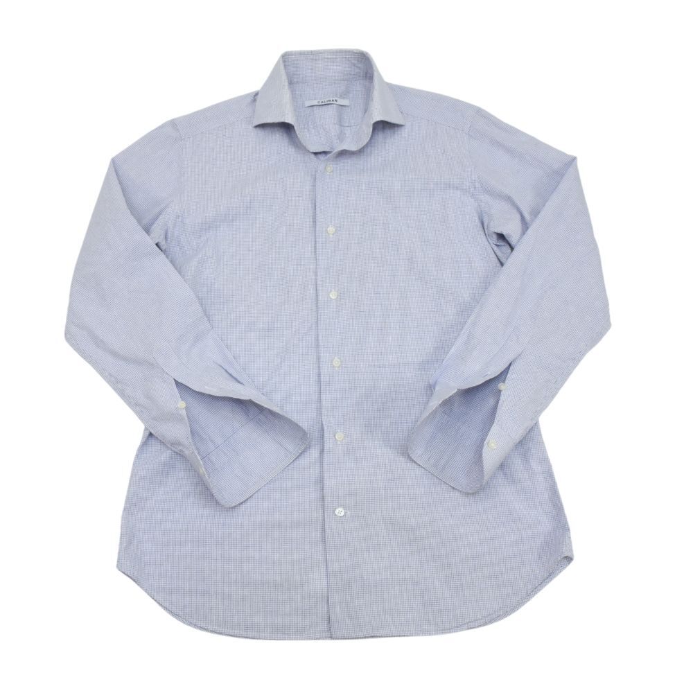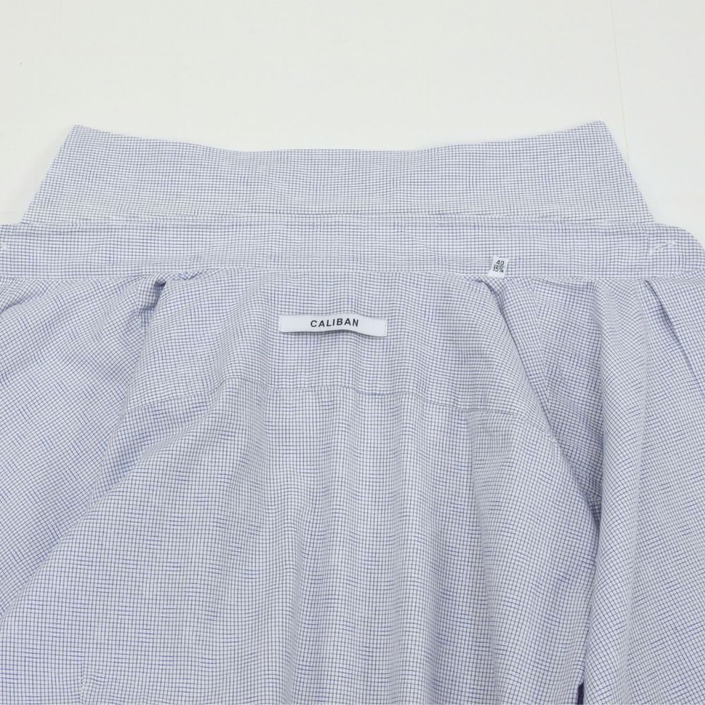 CALIBAN◇マイクロ格子柄シャツ◇サイズ40◇ブルー◇ホリゾンタルカラー◇イタリア制◇カリバン