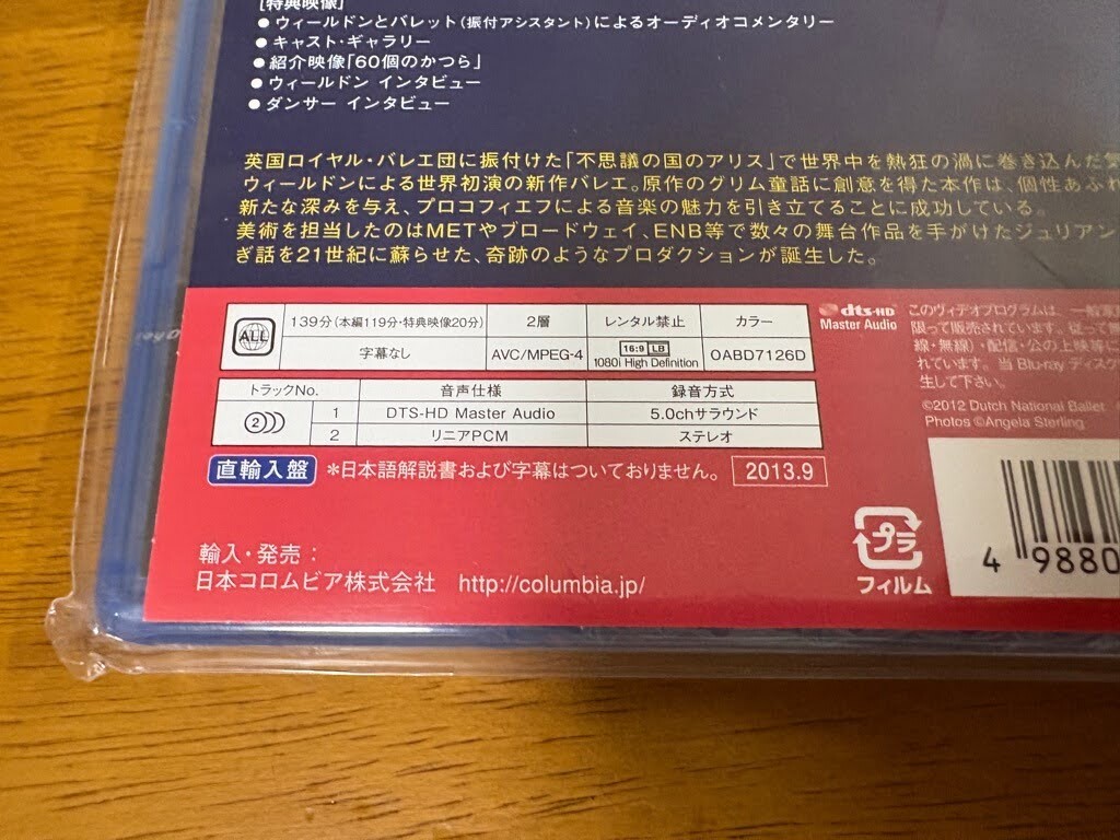 H7/未开封 Blu-ray シンデレラ 全3幕 ウィールドン版 オランダ国立バレエ プロコフィエフ フローリオ オランダシンフォニア ツィガンコーワ