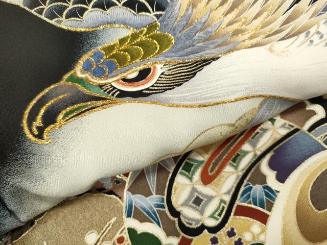 平和屋着物[]お宫参り 男の子 祝着 産着 初着 のしめ 刺繍 鹰 御所车吉祥笹松文 金彩 逸品 CAAV9383ze