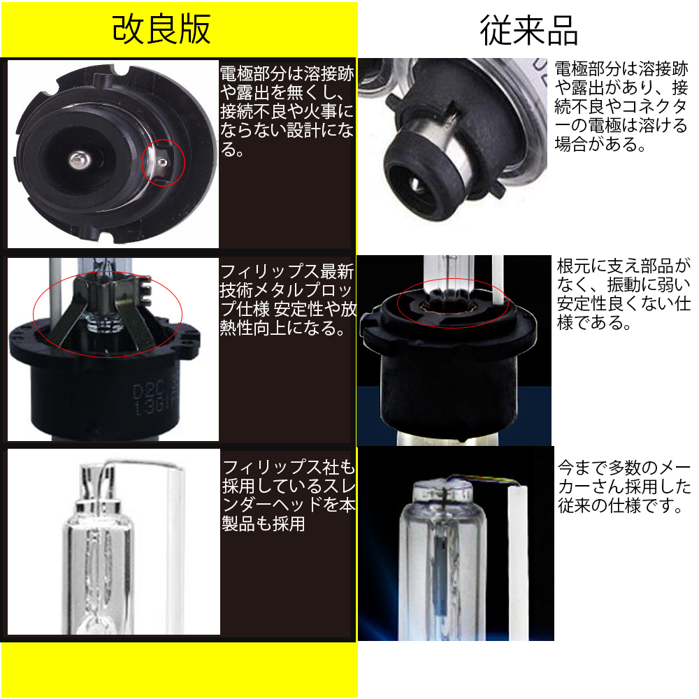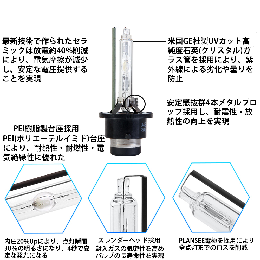 HIDバルブ HIDバーナー 改良版 D4C D4S D4R 3400ルーメン 纯正交换用 耐震 35W 4300K/6000K/8000K 12V/24V 2本セット 送料无料