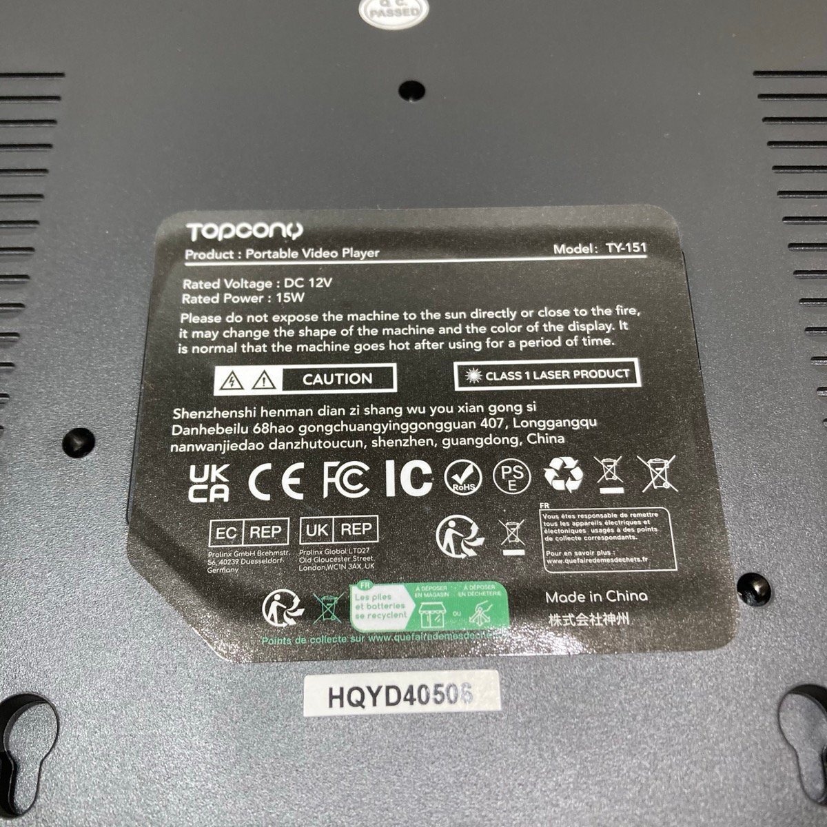 Topcony ポータブルDVDプレーヤー TY-151 cd dvdプレーヤー15.6インチ[C10388]