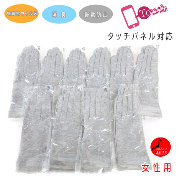 送料300円(税込)■ip811■レディース クロダ 抗菌抗ウイルス 消臭・帯电防止 グローブ(BA70012L9) グレー 10点(柊)【シンオク】