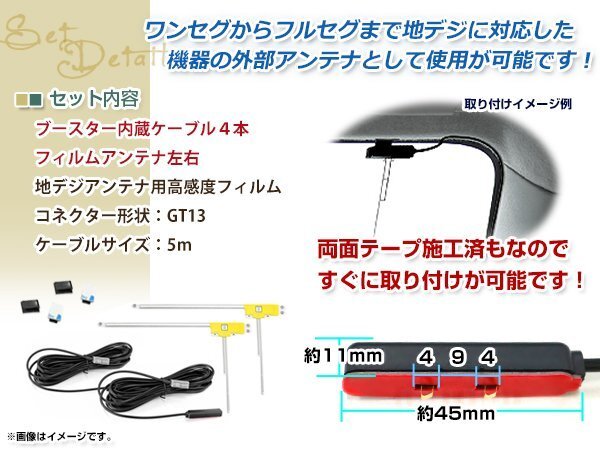 L型フィルムアンテナ 右2枚 地デジアンテナ用 ブースター内蔵型ケーブル 2本 ワンセグ フルセグ GT13 コネクター Clarion NX209