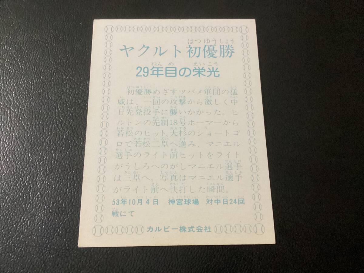美品 カルビー78年 マニエル(ヤクルト) ヤクルト初优胜 29年目の栄光 プロ野球カード