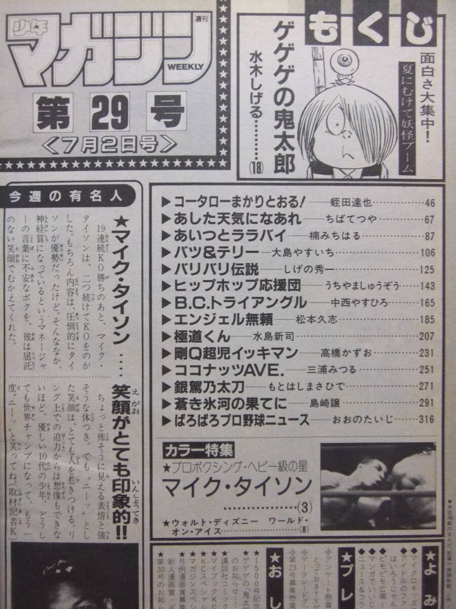 ☆☆W-1619★ 1986年 週刊少年マガジン 第29号 ★鬼太郎/コータロー/あした天気になあれ/あいつとララバイ/バツ&テリー/バリバリ伝説☆☆