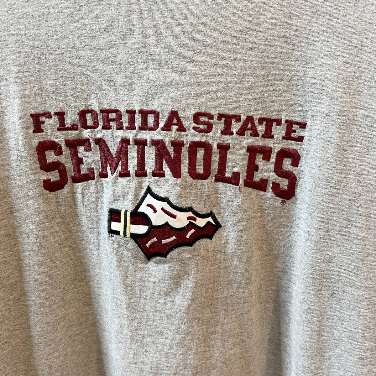 USA 古着 フロリダ州立大学 カレッジ Tシャツ 刺繍 ロゴ グレー メンズXXL 程度 大きいサイズ BA2550