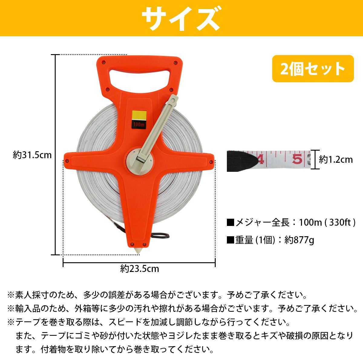 【送料无料】100m 2个 テープメジャー 巻尺 両面目盛り付 コンパクト 距离测定器 ライン引き 运动会 体育祭 部活 计测 工事现场 建筑 测定