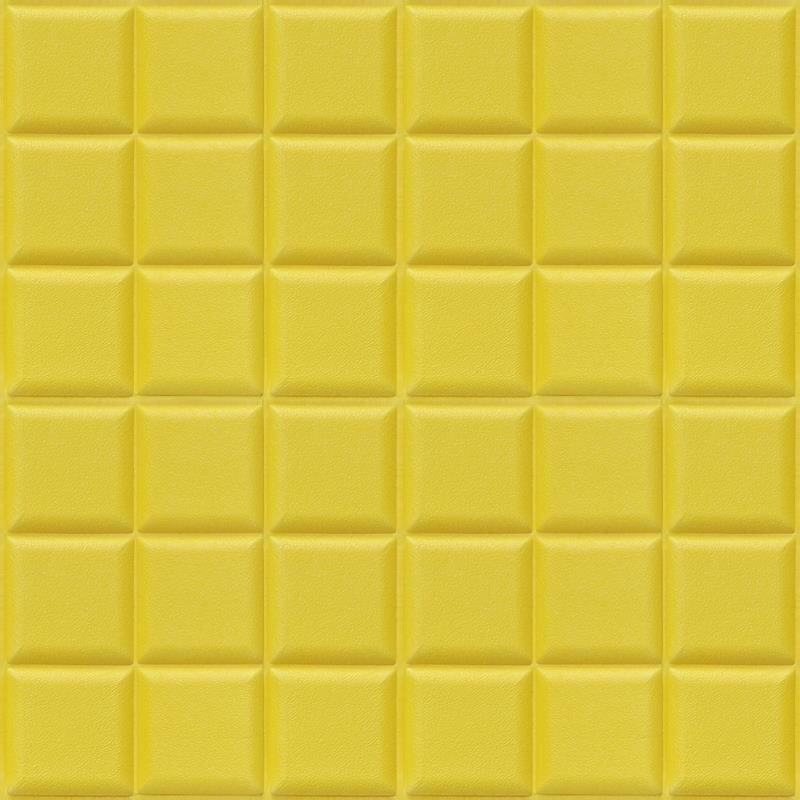 【10枚】高品质 3D クッション 壁 シール スクエア×イエロー レザー タイル调 煳付き リメイク 60×60cm 耐水 抗菌 伤防止