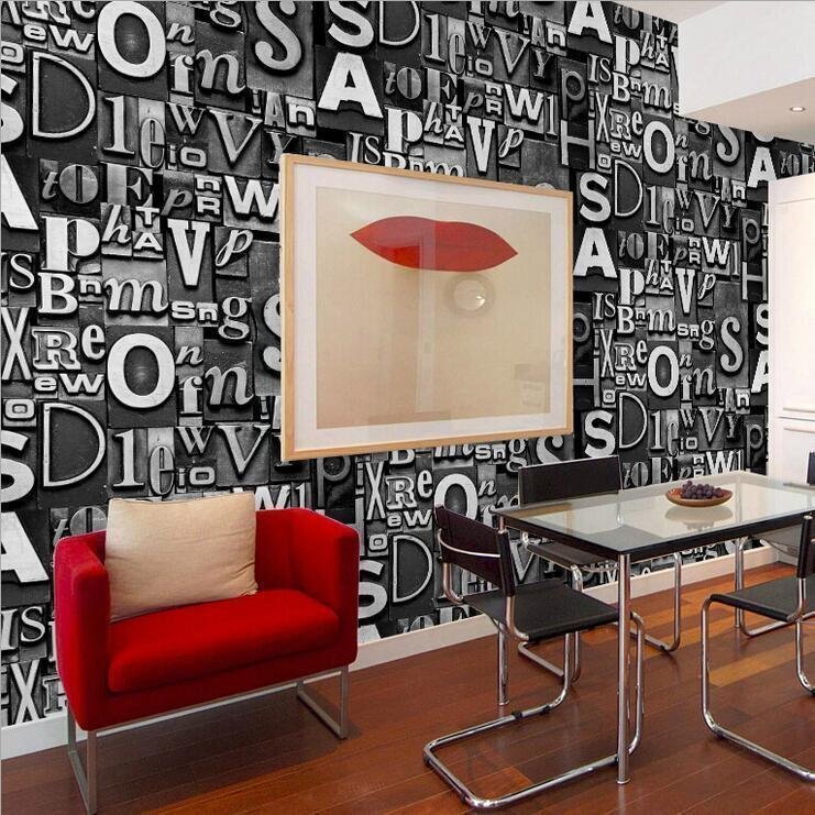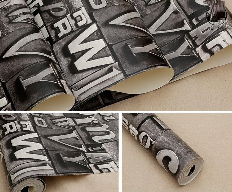 3D ウォールペーパー 【ビンテージロゴ×グレー】 英字 53cm×30m アンティーク DIY のりなし 壁纸 クロス リメイク 欧米