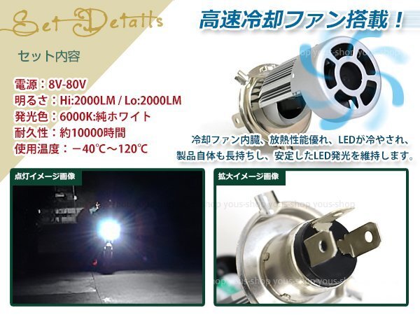 バイク専用 LEDヘッドライト 高速ファン内蔵 COBチップ 20W 一体型 H4バルブ 2000LM 12V 24V用 ブルバード800