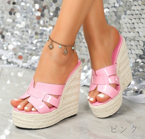【高品质】全5色 ビーチサンダル ミュール 厚底 ウエッジ 无地 sweet系 35 ピンク