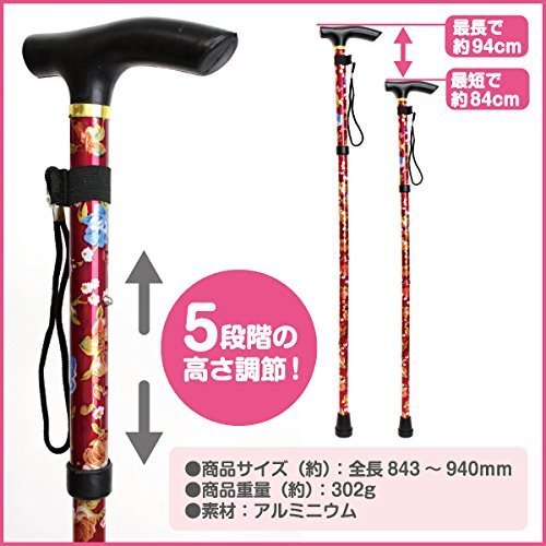 【VAPS_1】花柄 折りたたみステッキ 《パープル》 伸缩折りたたみ式杖 伸缩杖 高齢者歩行补助 軽量つえ 敬老の日 送込