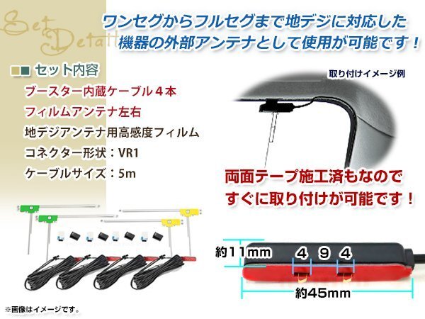 L型フィルムアンテナ 左右各2枚 地デジアンテナ用 ブースター内蔵型ケーブル 4本 ワンセグ フルセグ VR1 Panasonic CN-MW100D