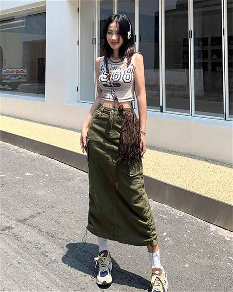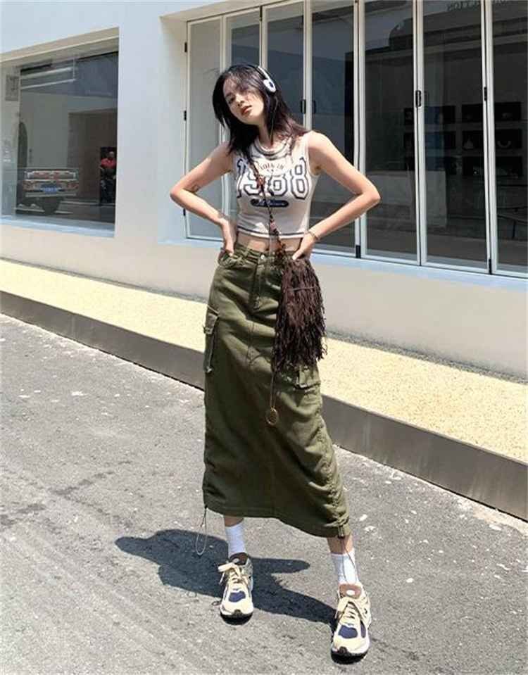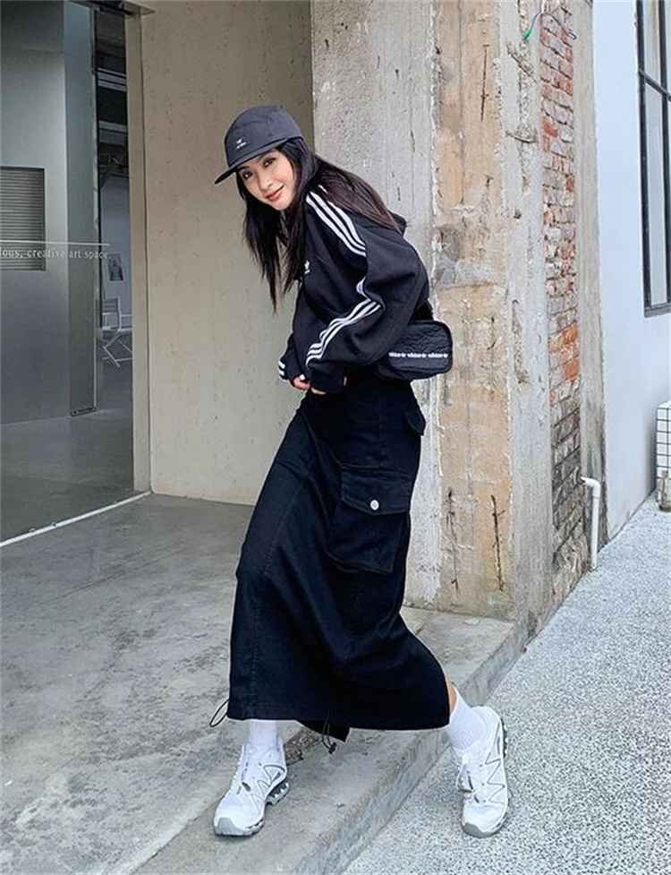 Aライン ミドル丈スカート シンプル アメリカンスタイル M ブラック