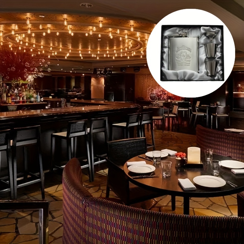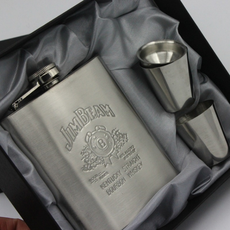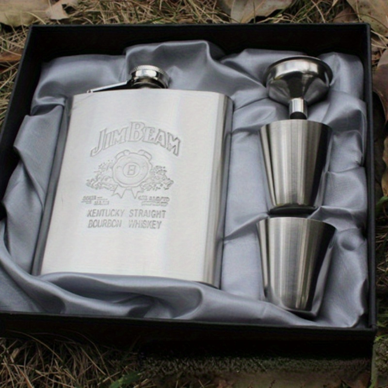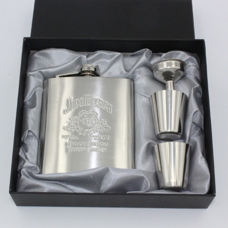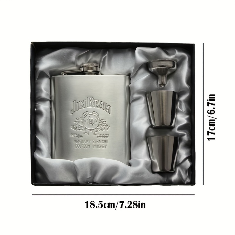 4点セット ウイスキーボトル フラスコ セット スキットル シルバー 7オンス ジャック・ダニエルズ ステンレス制 205ml/7oz 軽量 漏斗 t2145