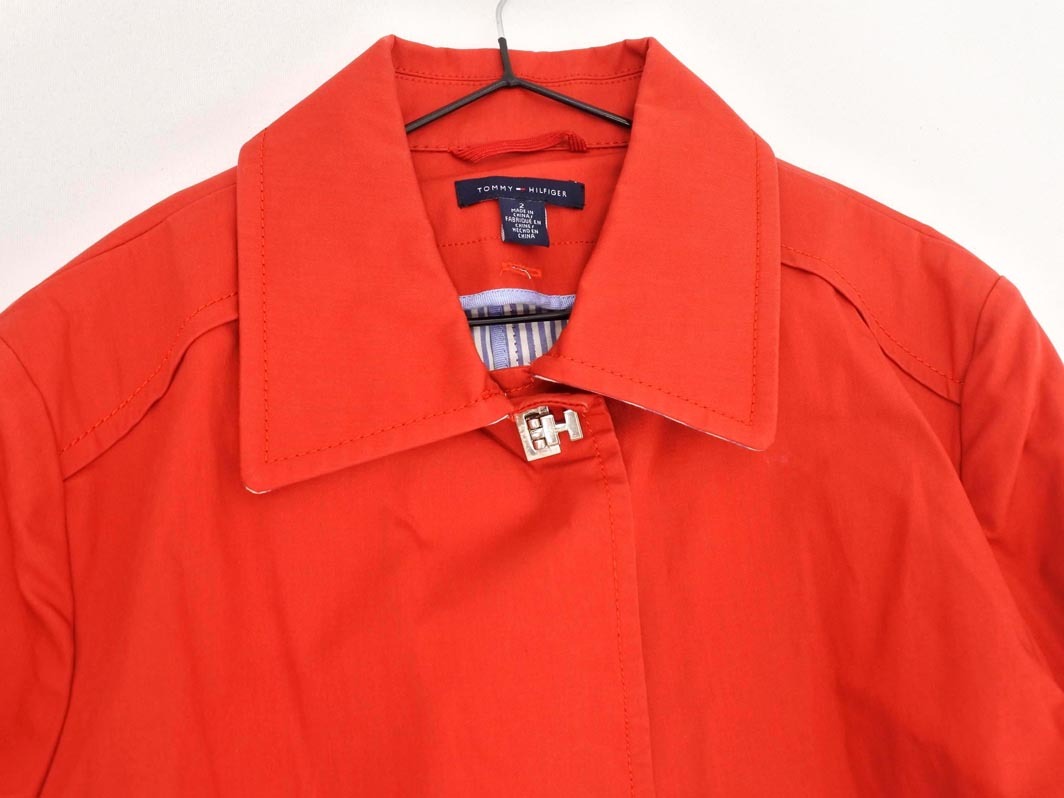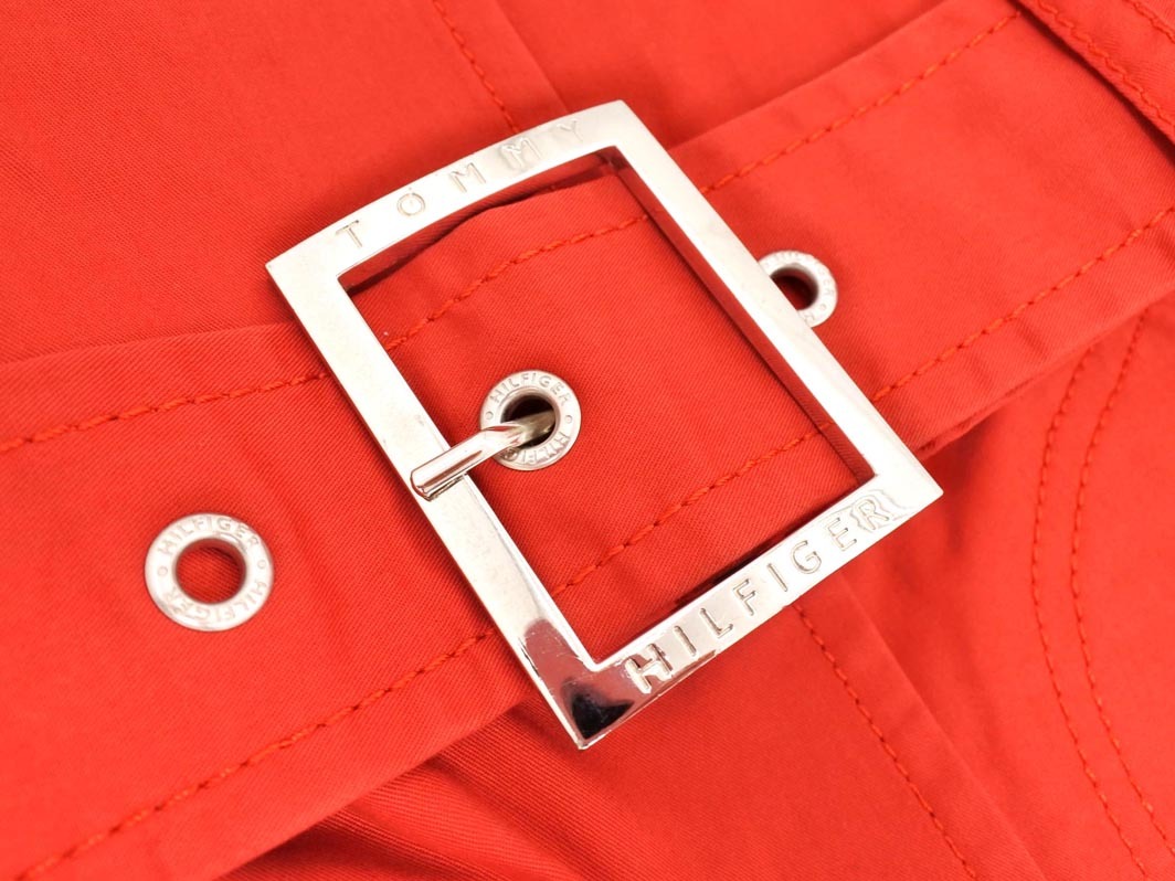 TOMMY HILFIGER トミーヒルフィガー Hボタン トレンチ コート size2/赤 ■◇ ☆ fha4 レディース