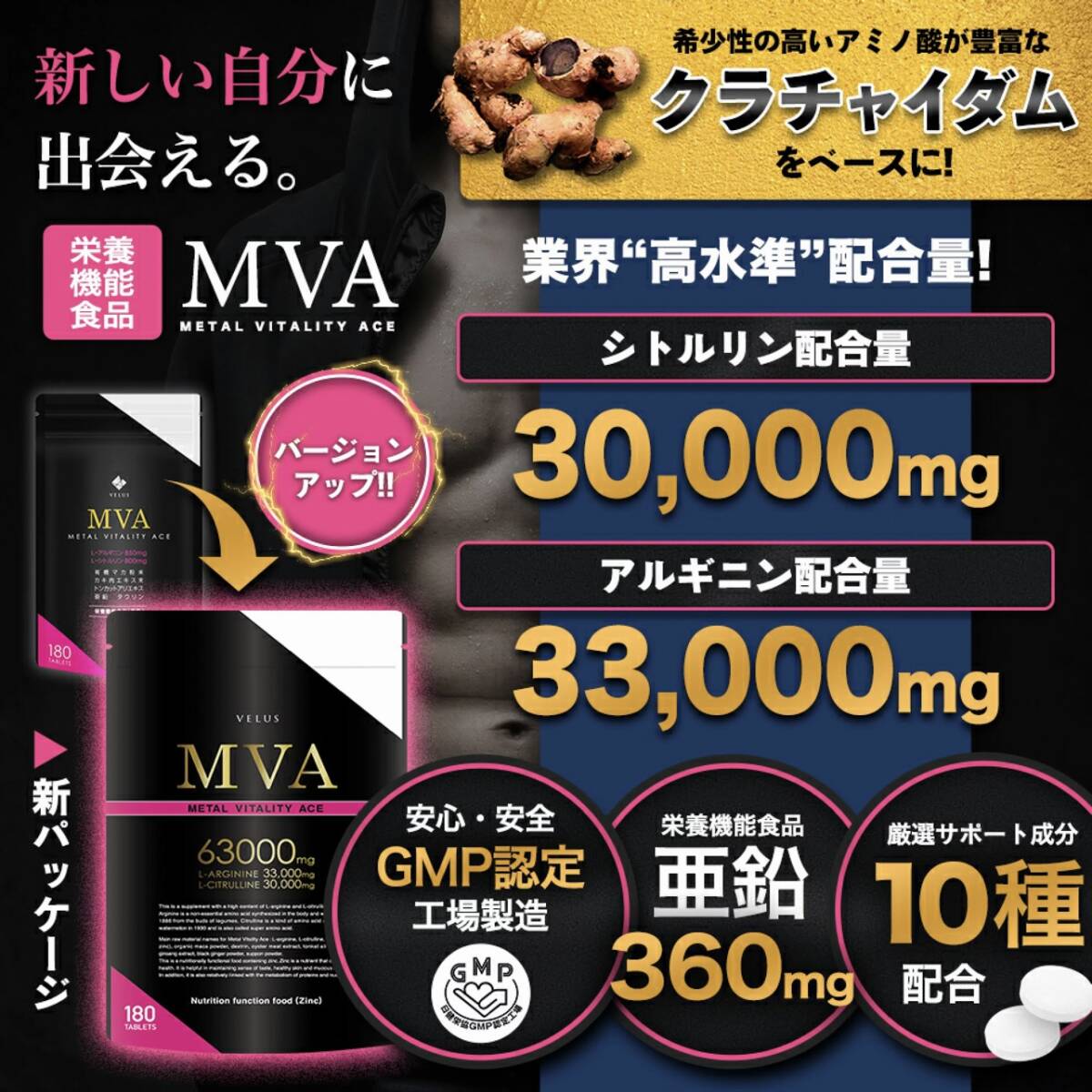 MVA VELUS シトルリン アルギニン 亜铅 マカ コンドーム ローション アカガウクルア ソフォン 増大 メンズサプリ 180粒