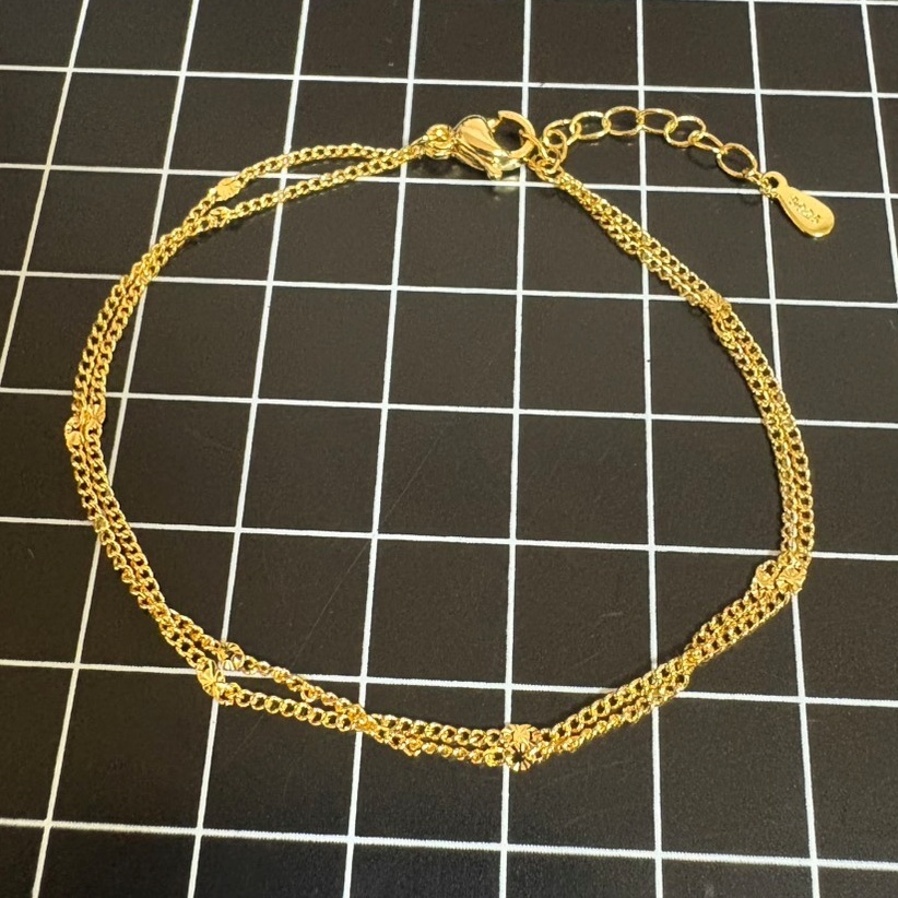 D038 匿名配送 ブレスレット レディース ゴールド 二重 チェーン アジャスター有り s925 细い シンプル 上品