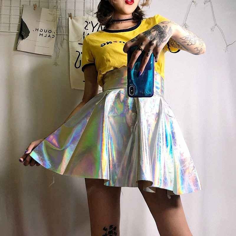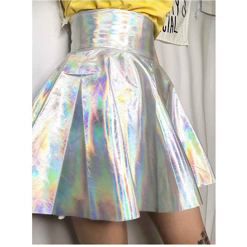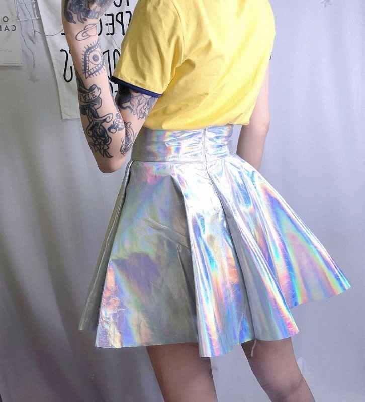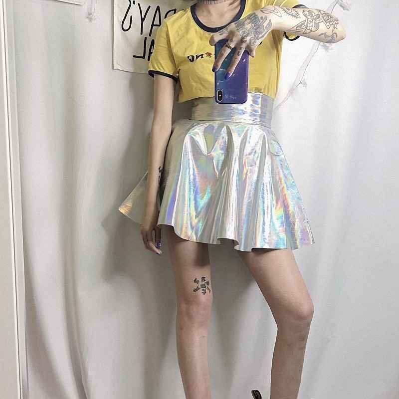 ミニスカート ハイウエスト フリル 切り替え sweet系 L 虹色