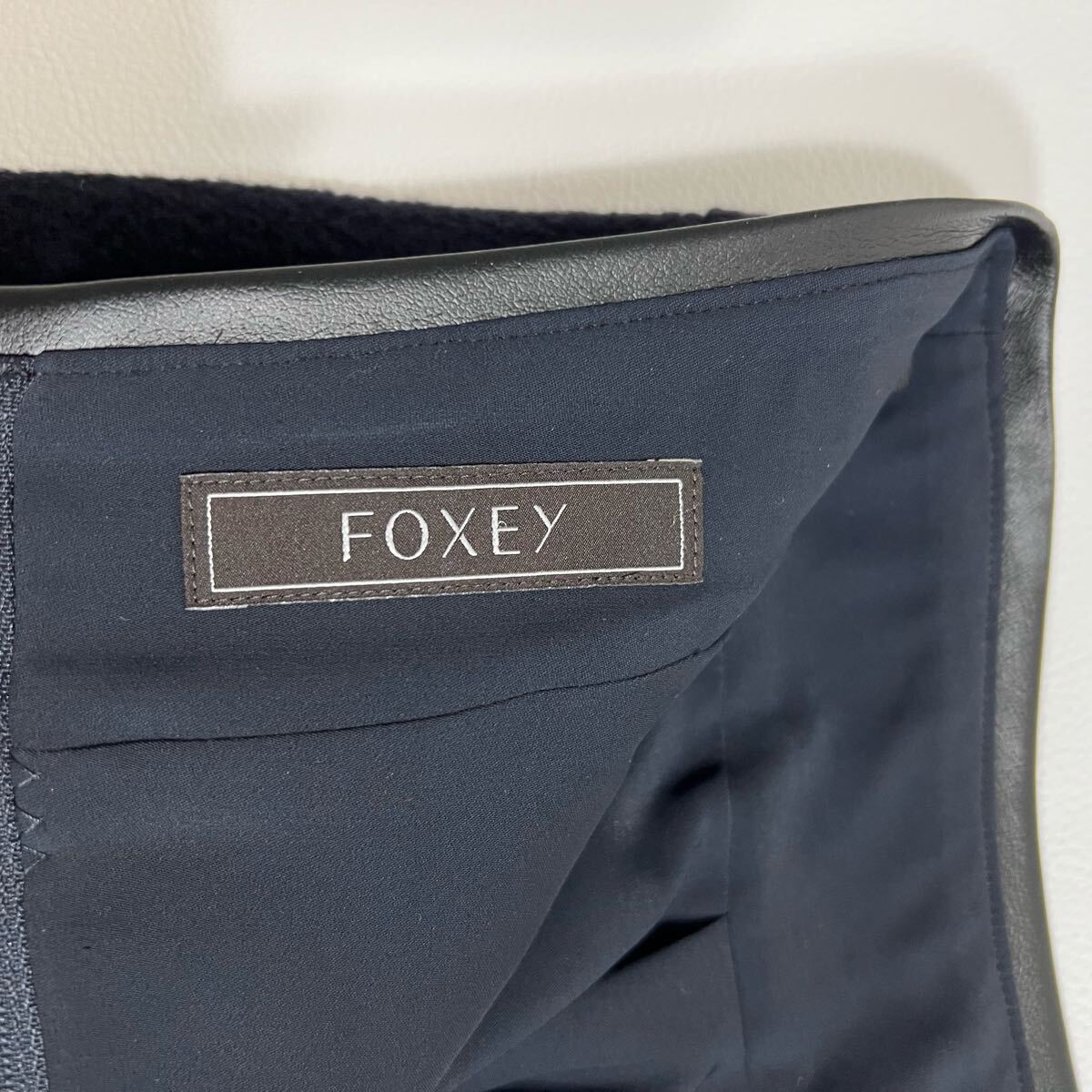 美品 FOXEY BOUTIQUE フォクシーブティック フレアスカート パウダーツイード Powder Tweed 膝丈 ウール ミッドナイトブルー ネイビー 38