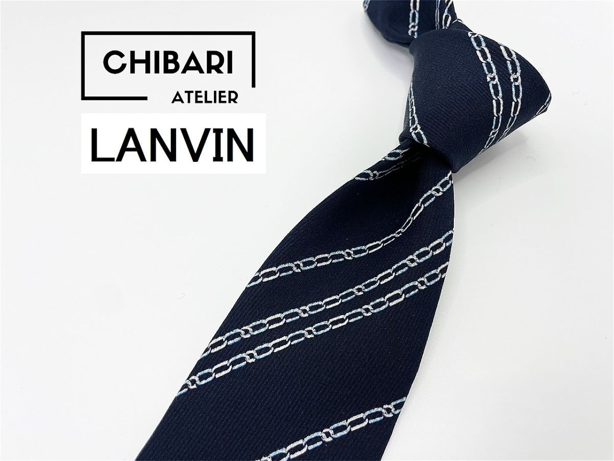【超美品】LANVIN ランバン ロゴ&レジメンタル柄 ネクタイ 3本以上 送料无料 メンズ ネイビー 0901027