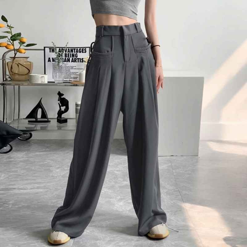 ワイドパンツ アメカジ イージーパンツ ロングパンツ ストリート カジュアル ボトムス タック入り スラックス无地 XL ブラウン