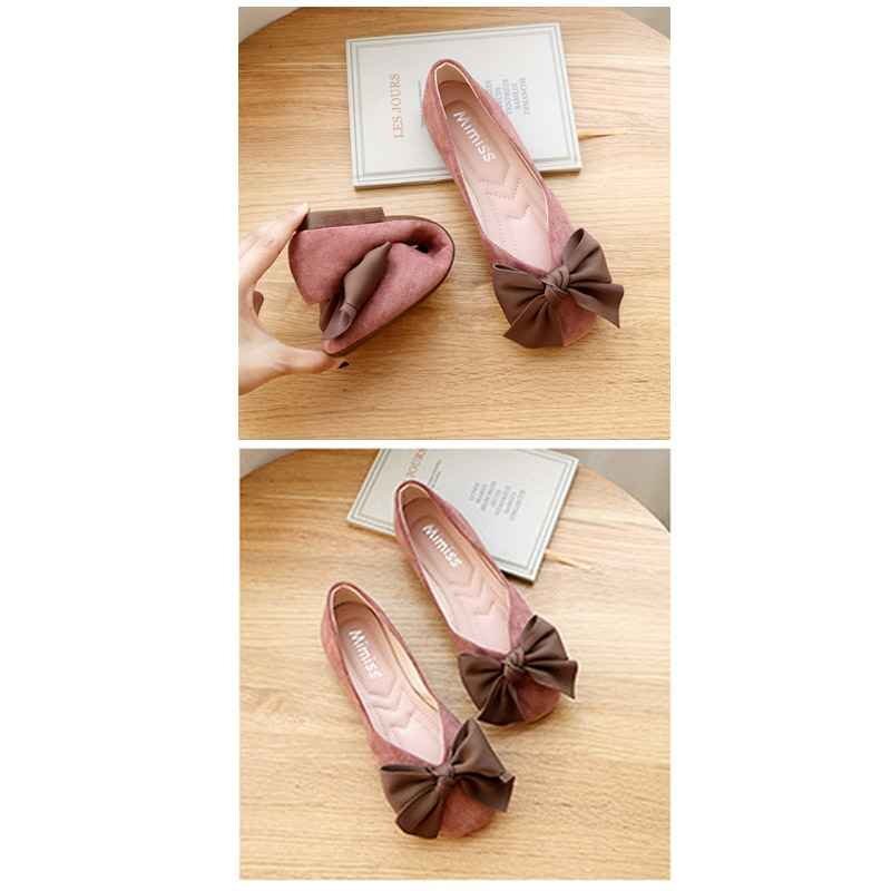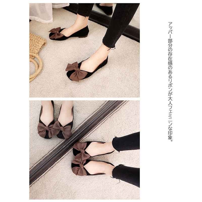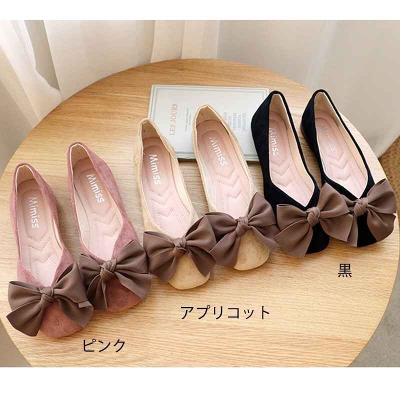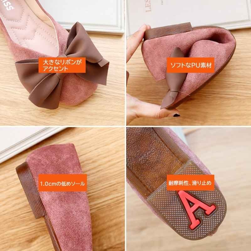 パンプス ミュール 靴 1cmヒール ソフト フィット ラウンド きれいめ リボン 40 アプリコット