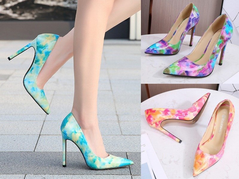 ハイヒールシューズ オフィス とんがりトゥ ピンヒール バイカラー シンプル 【41】25~25.5cm ブルー