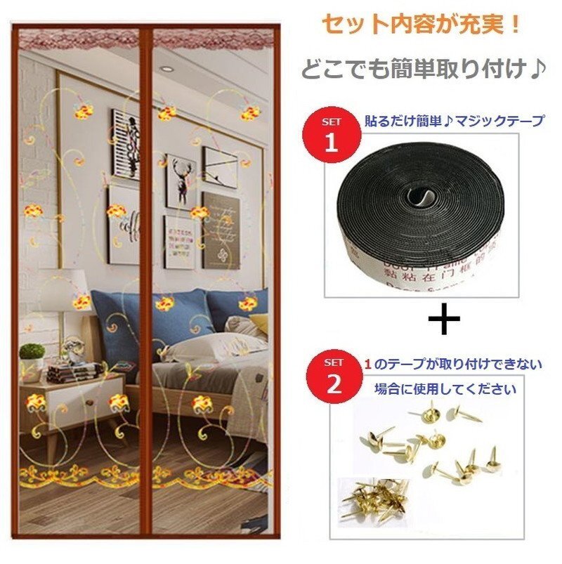 贴るだけ☆どこでも设置OK!网戸カーテン 90cm×205cm マグネット 蚊 害虫 マジックテープ 目隠し 虫よけ ネット I-044