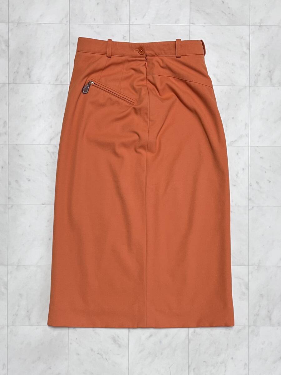 VINTAGE HERMES ヴィンテージ エルメスフロントジップポケット ストレッチコットン スカート サイズ:36 オレンジ