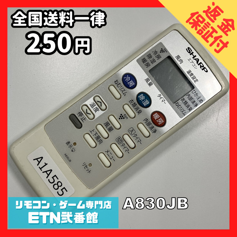 A1A585 【送料250円】エアコン リモコン / SHARP シャープ A830JB 动作确认済み★即発送★