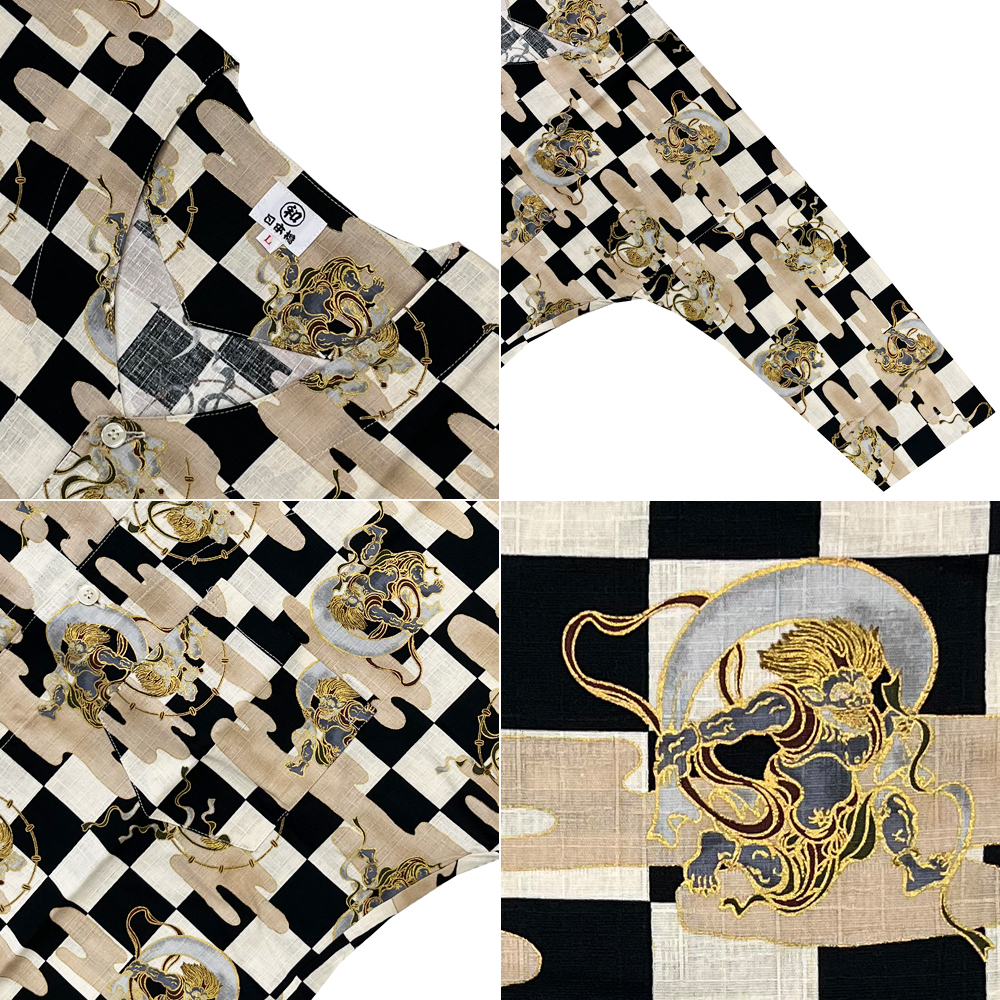 お祭用品/肉襦袢 まるわ日本桥 鲤口シャツ 风神雷神市松 [R2506-14黒白] 1号(子ども用)