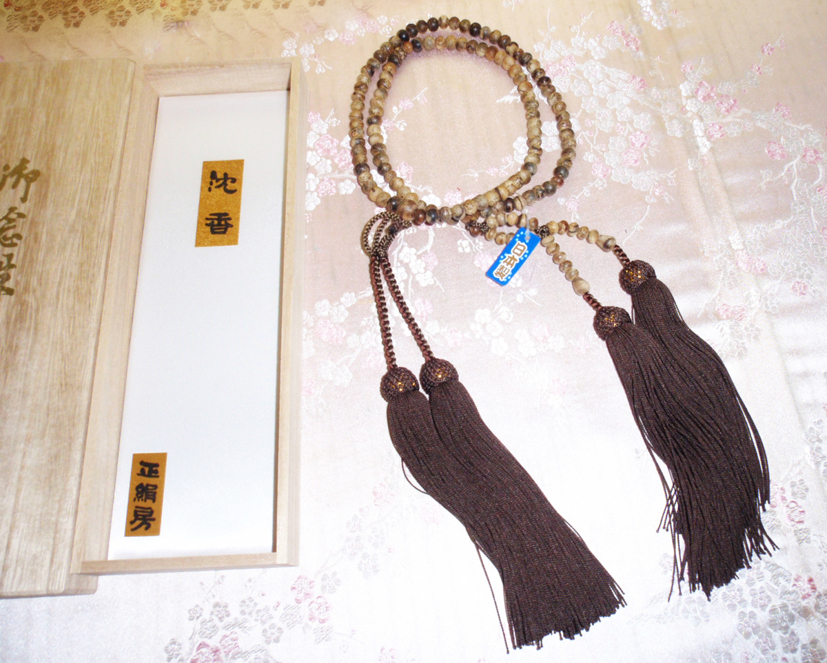 ◇25◇ 浄土真宗 门徒用☆シャム沈香 共仕立 1尺 数珠 正绢 长房 莲如结び 国産品 桐箱入 念珠 稀少 新品【信頼のヤフオク!実绩25年】