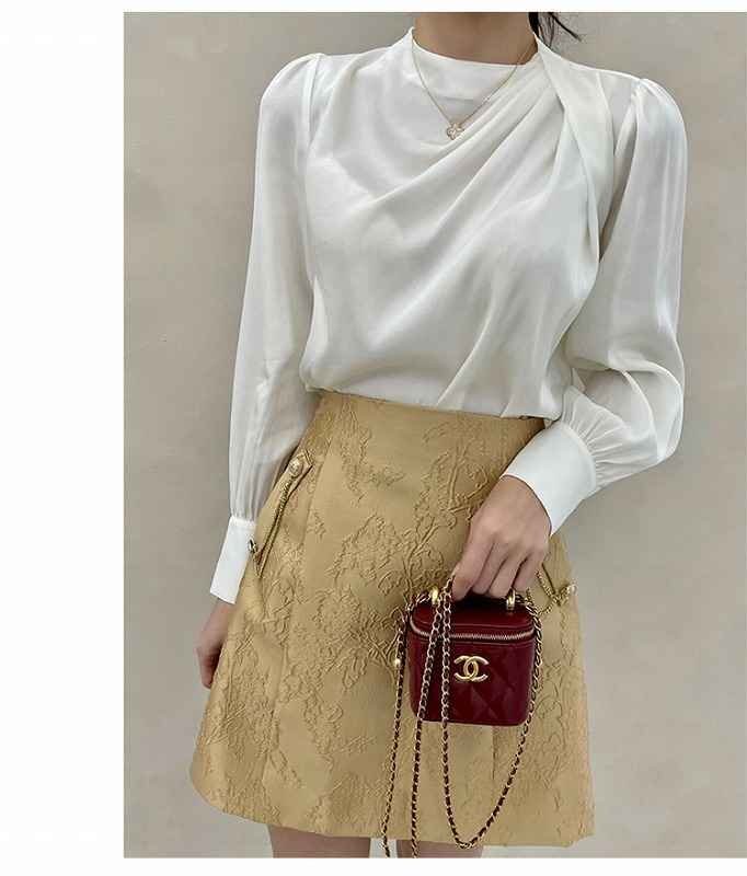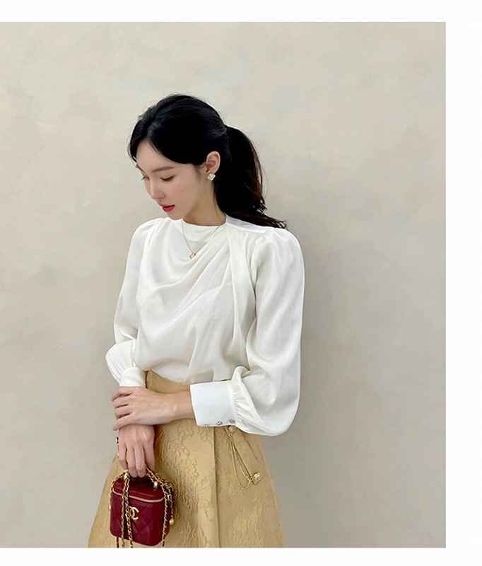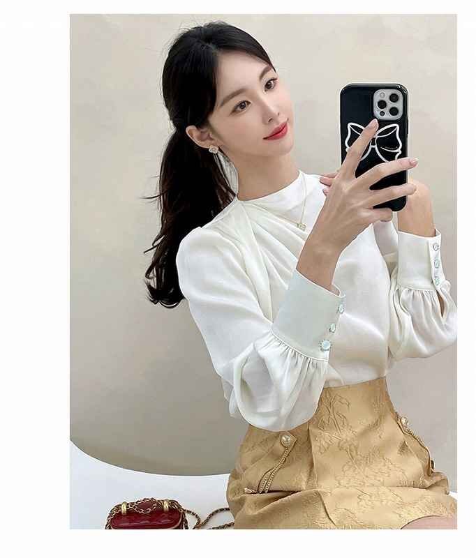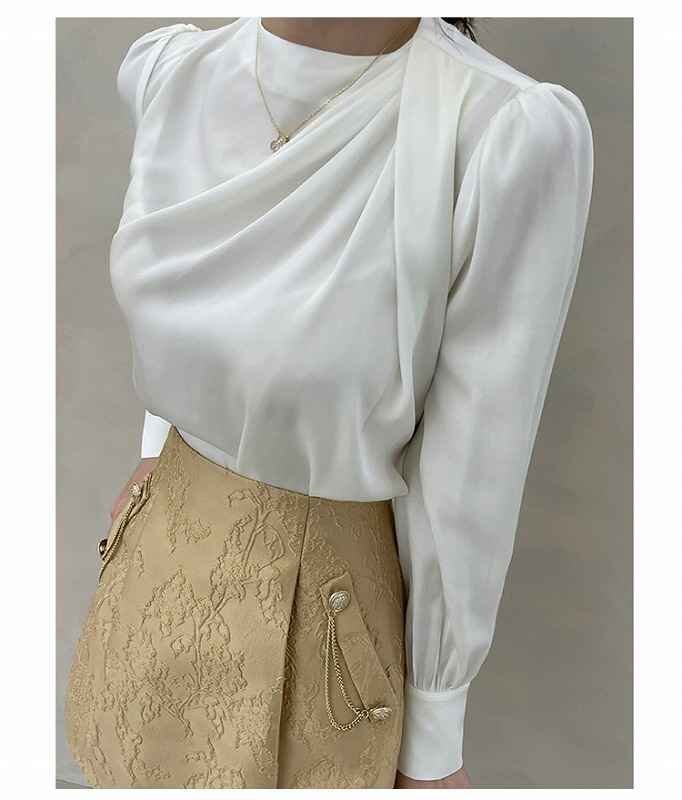 长袖シャツ ボリューム袖 きれいめシャツ 长袖ブラウス パフスリーブ オフィスカジュアル XL ホワイト