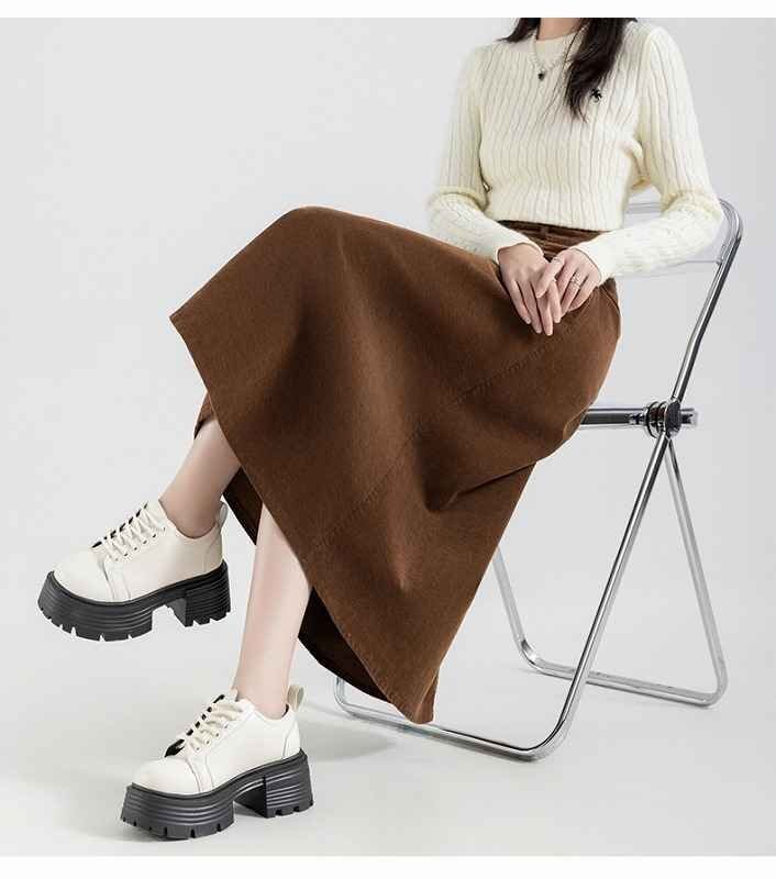 ひざ丈スカート フリル カジュアル シンプル かわいい 秋冬 XL ブラック