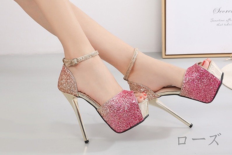 【高品质】全3色 スリッポン ローファー モカシン ピンヒール バイカラー スパンコール sweet系 36 ブラック