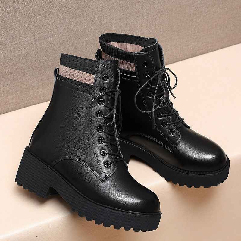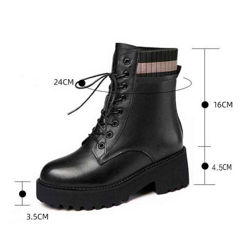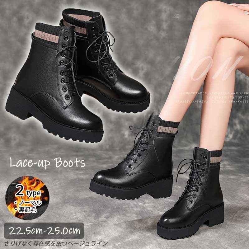 ブーツ ショート 里ボア 厚底 脚长 里起毛 滑り止め レースアップ 35 黒(ノーマル)