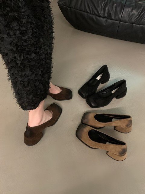レディース パンプス ミュール 靴 安定感 オフィス ブラウン チャンキーヒール ソフト 黒 22.5cm(35) ブラウン