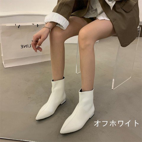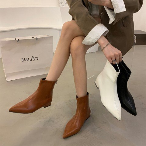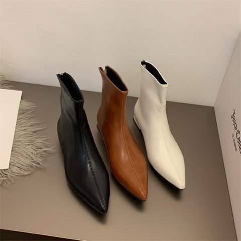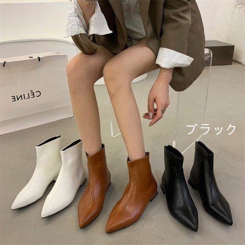 ポインテッドトゥ 短筒 歩きやすい ショートブーツ 単靴 低ヒール 痩せ靴 【39】24.5cm ブラウン